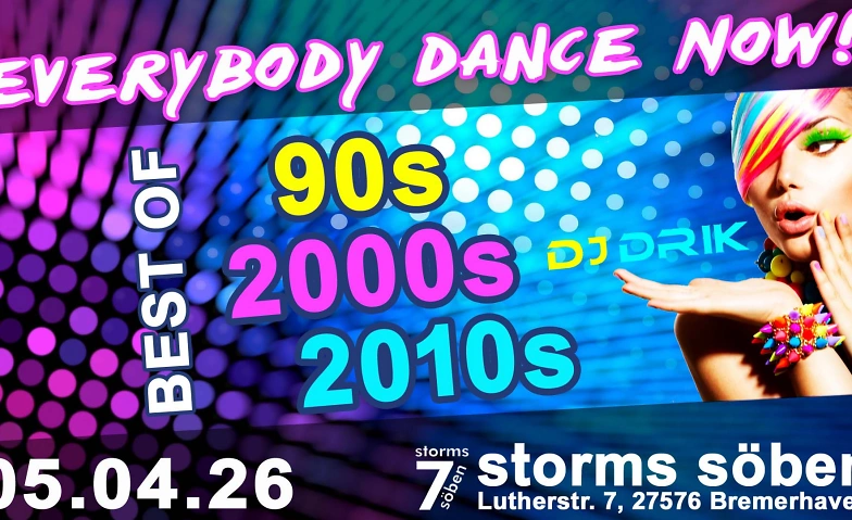 Everybody Dance Now – Best of 90s, 2000s & 2010s storms söben, Lutherstraße 7, 27576 Bremerhaven Billets