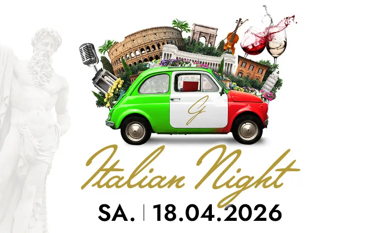 Genießen Sie ein exklusives 5-Gänge-Menü und lassen Sie sich von italienischer Musik, Lebensfreude und besonderer Atmosphäre mitreißen.
