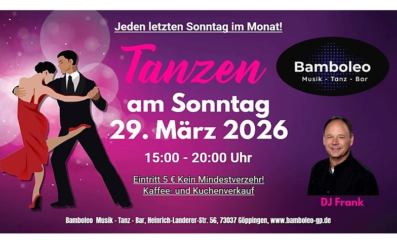 Tanzen am Sonntag mit Kaffee und Kuchen Bamboleo Göppingen, Heinrich-Landerer-Straße 56, 73037 Göppingen Billets