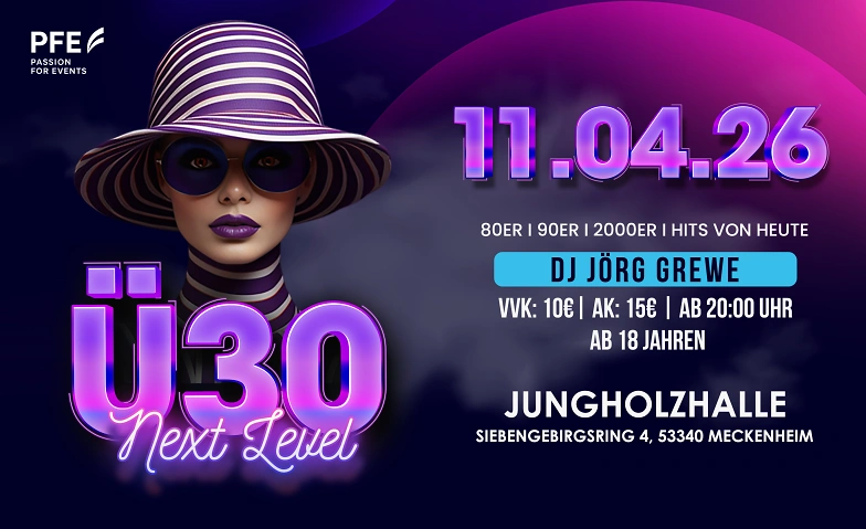 Ü30 NEXT LEVEL – Die ultimative 90er & 2000er Nacht! Location, Junholzhalle Siebengebirgsring 4, 53340 Meckenheim Billets