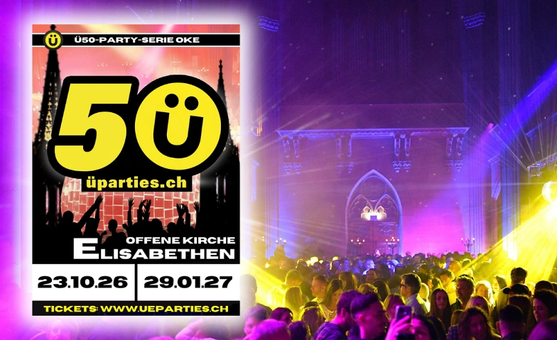 Nach den erfolgreichen Ü50-Events in der Walzhalle in Münchenstein kommt die Party-Serie nun auch in die Elisabethenkirche nach Basel!