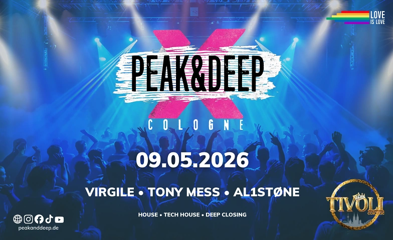 Unsere Location: das TIVOLI Club Cologne – mitten im Herzen der Stadt gelegen und hervorragend erreichbar. Seit Jahren in der LGBTQ+-Szene etabliert und bekannt für seine unkomplizierte, offene Atmosphäre. Weitläufige Fläche, große Lounge, viele Verweilmöglichkeiten und drei Theken sorgen für einen entspannten Flow durch die Nacht.