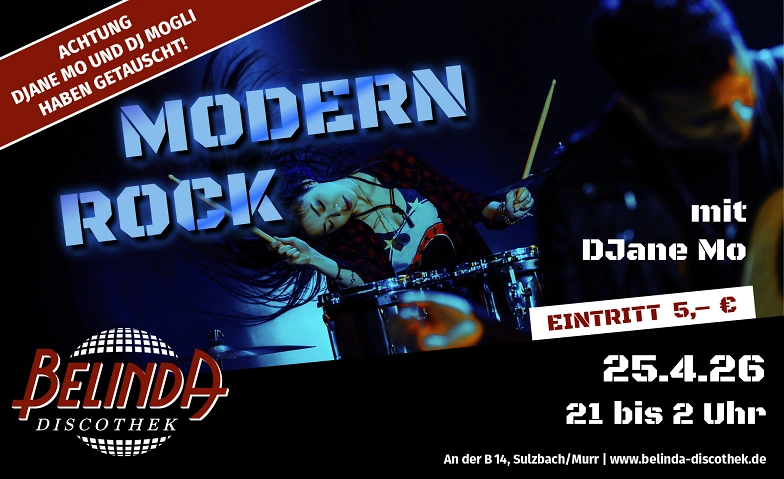 Modern Rock mit DJane Mo Belinda Discothek, Backnanger Straße 78, 71560 Sulzbach an der Murr Billets