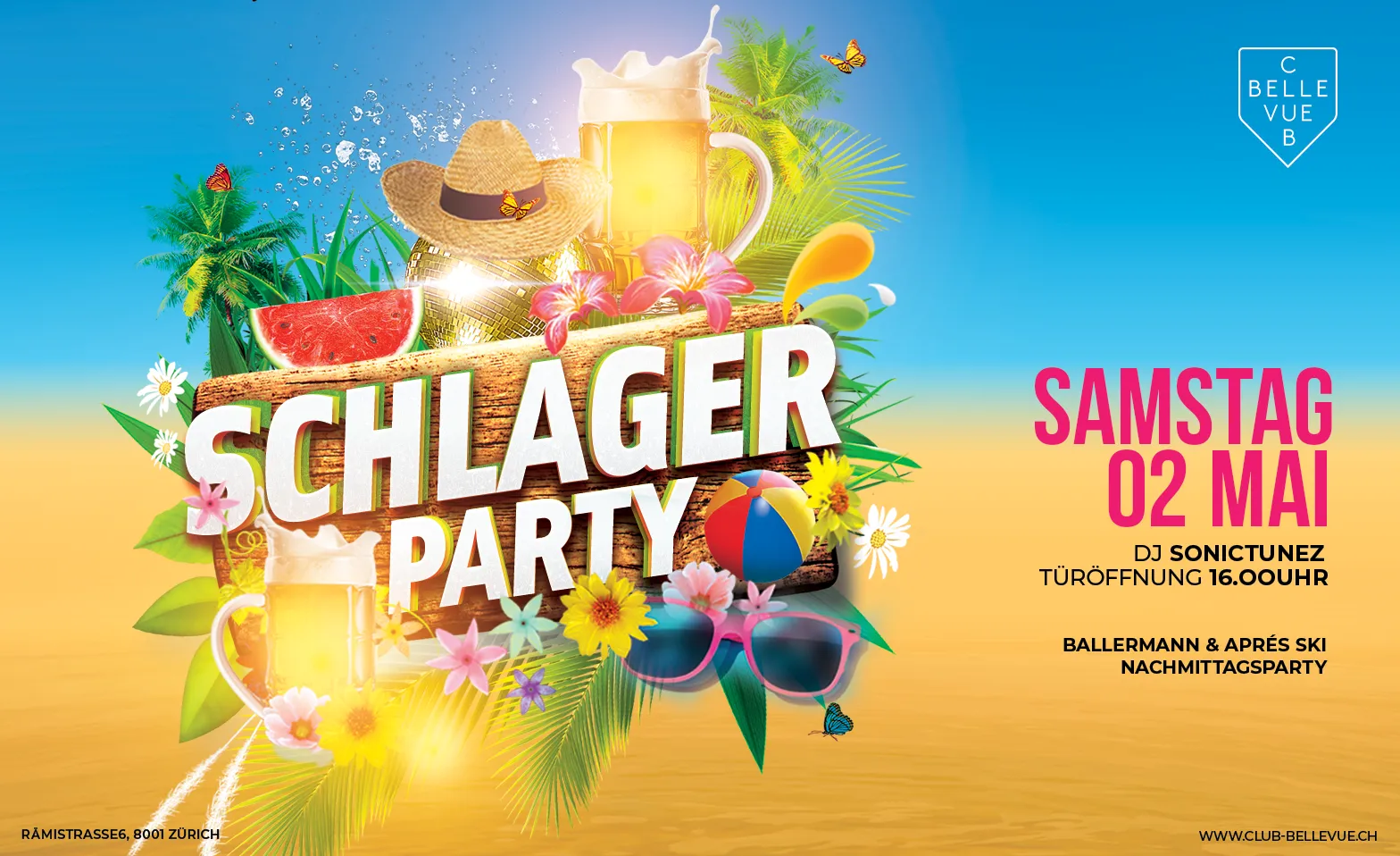 SCHLAGER PARTY Club Bellevue, Freieckgasse 9, 8001 Zurich Billets