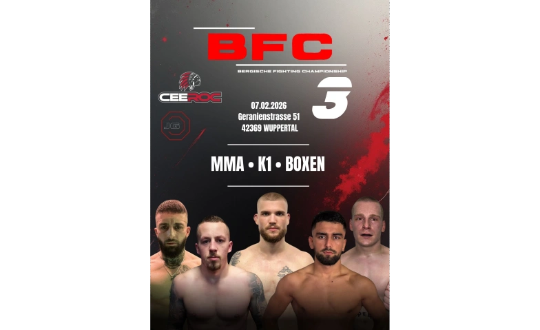 Die BFC – Bergische Fighting Championship gehört zu den am schnellsten wachsenden MMA-Eventreihen in NRW. Am 07. Februar 2026 kehrt die BFC mit einer energiegeladenen Fight Night zurück nach Wuppertal – mit spektakulären Matchups, explosiven Newcomern und internationalen Top-Athleten.