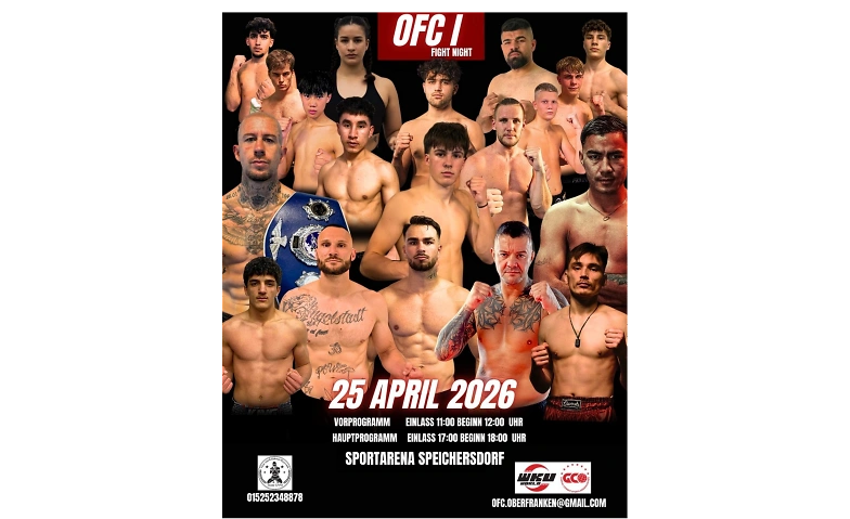 Am 25.04.2026 feiert mit der Oberfranken Fighting Championship (OFC) eine neue, hochklassige Kampfsportveranstaltung ihre große Premiere. Fans von K1, Muay Thai und Boxen erwartet ein mitreißender Kampfsporttag – von ambitioniertem Nachwuchs bis hin zu internationalen Titelkämpfen.
