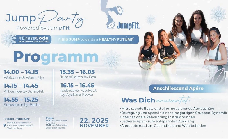 JumpFit feiert sein 5-jähriges Jubiläum und lädt euch ein zur magischen Winter Wonderland Jump Party in Lenzburg! ❄️✨