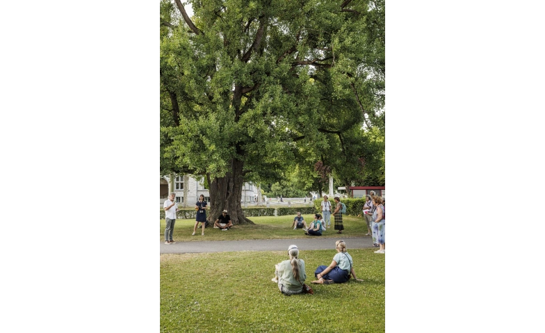 Gemeinsam begegnen wir der alten Stieleiche im Rosengarten (Pflanzjahr 1800), über die uns Biologe Alex Borer mehr erzählen wird.