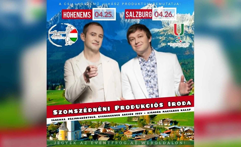 A legendás Szomszédnéni Produkciós Iroda, akik évtizedek óta nevettetik meg a magyar közönséget Erdélytől egészen Budapestig. Most pedig Salzburgba hozzák azt az egyedi humort, amitől mindannyiunknak kicsit olyan érzése lesz, mintha újra otthon lennénk.