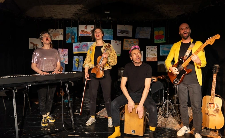 Begleitet von Klavier, Gitarre, Geige, Orffinstrumenten, Percussion und Schlagzeug singen die MultiinstrumentalistInnen dreistimmig und nehmen das Publikum mit auf eine abwechslungsreiche musikalische Reise. Das Programm richtet sich an die ganze Familie und verspricht beste Unterhaltung für Gross und Klein.