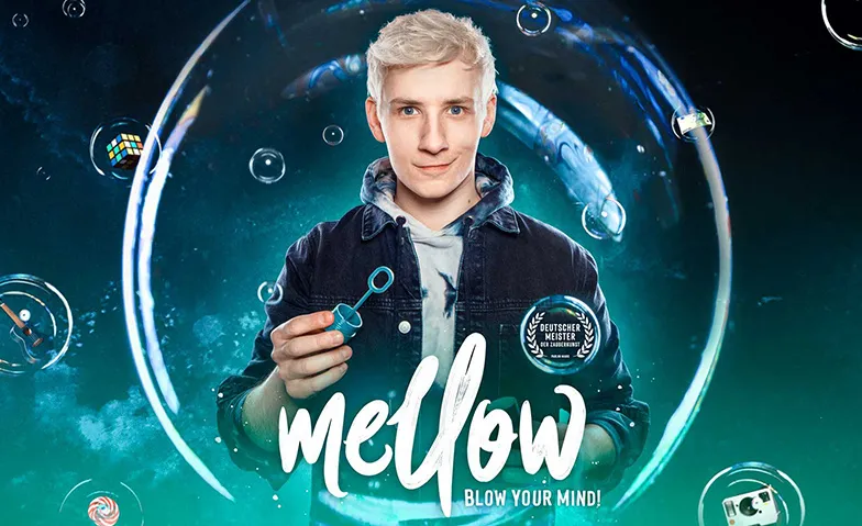 Wenn Du Dir die Augen reibst und Deine Gehirnzellen durchgepustet werden: Dann ist es Mellow! Der sympathische Magier im Kapuzenpulli ist Deutscher Meister der Zauberkunst (Parlor-Magic) und stellt mit kreativen Illusionen und humorvollem Storytelling Deine Welt auf den Kopf!