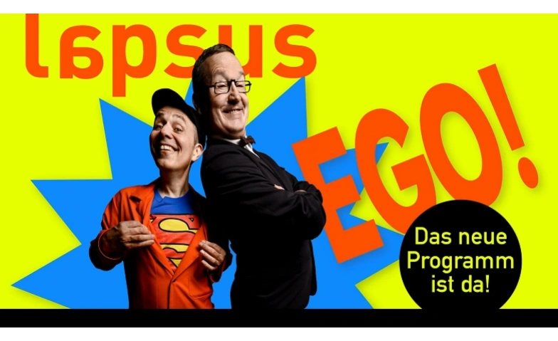 Lapsus ist zurück – und diesmal geht’s ums „EGO“. In ihrem achten Programm müssen Peter Winkler und Christian Höhener das Ego ihrer Kultfiguren Theo Hitzig und Bruno Gschwind in Schach halten.