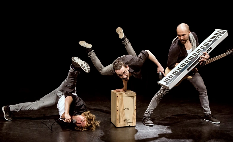 Die drei internationalen Multitalente spielen zudem all ihre Fähigkeiten aus und nutzen ihren spitzbübischen Spieltrieb. Warum nicht den Schwung des Saltos nutzen, um dabei das Schlagzeug zu spielen? Warum Musik aus der Konserve, wenn man seine Artistik musikalisch und gesanglich auch selbst live begleiten kann?