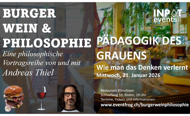 BURGER WEIN & PHILOSOPHIE: Pädagogik des Grauens Konferenzzentrum Schluefweg | Stadtsaal, Schluefweg 10, 8302 Kloten Billets