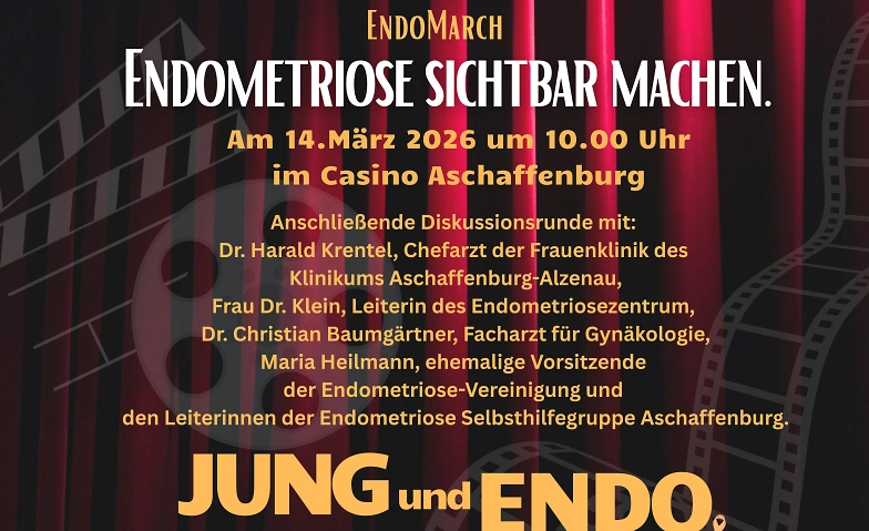 Die Endometriose Selbsthilfegruppe Aschaffenburg lädt zu einer besonderen Kino-Veranstaltung ins Casino Filmtheater Aschaffenburg ein. Gezeigt wird der Film Jung und Endo der Endometriose-Vereinigung Deutschland, der jungen Betroffenen eine Stimme gibt und ihren Erfahrungen Raum verschafft.