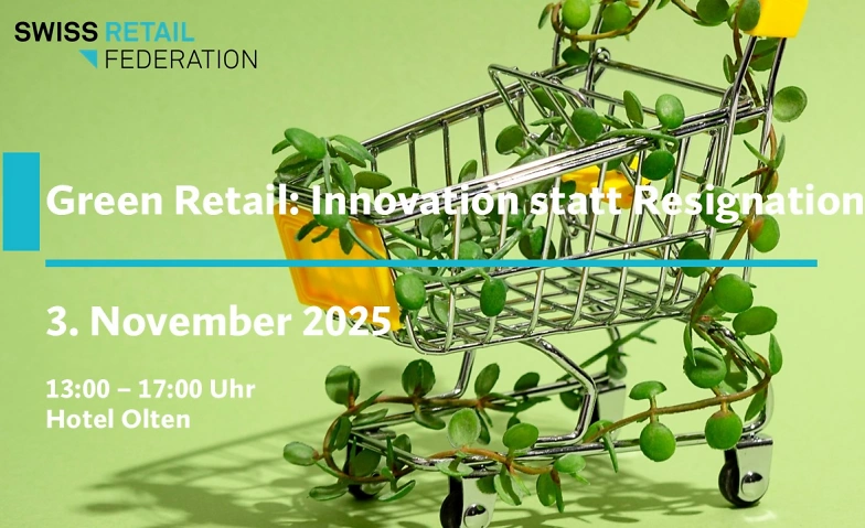 Am 3. November 2025 laden wir Sie herzlich zum zweiten "Green Retail" Event in Olten ein. Nach der erfolgreichen Premiere im Jahr 2023 steht die halbtägige Tagung von 13:00 bis 17:00 Uhr unter dem Motto «Innovation statt Resignation».