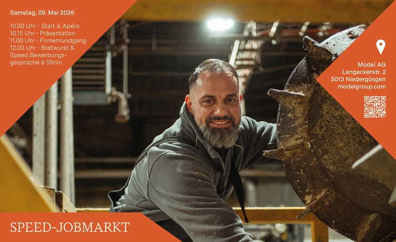 Technik erleben, hinter die Kulissen schauen und vielleicht gleich den nächsten Karriereschritt entdecken: Am Samstag, 9. Mai 2026, lädt die Model AG Sie herzlich zum Speed-Jobmarkt in ihr Werk in Niedergösgen ein. Der Anlass richtet sich an alle, die sich für Technik, Industrie und neue berufliche Perspektiven interessieren – ob Fachkräfte, Berufseinsteigende oder Menschen, die sich neu orientieren möchten.