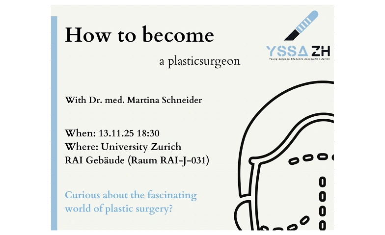 How to become a Plastic Surgeon UZH Gebäude RAI-J-031, Rämistrasse 74, 8032 Zürich Billets