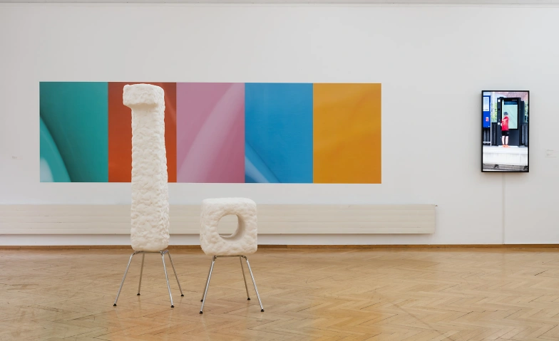 Credits: Abb.: Ausstellungsansicht Kunstmuseum Olten 2025 mit Werken von Pawel Ferus, Andreas Jäggi und Andreas Hofer, Foto: Rachel Bühlmann