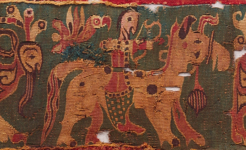 Credits: Wollwirkerei mit Reitern (Detail), Östliches Zentralasien (Xinjiang), 1.–3. Jahrhundert, Wolle (Schlitzwirkerei, Diagonalgeflecht), Abegg-Stiftung, Inv. Nr. 5138. © Abegg-Stiftung (Foto: Christoph von Viràg)